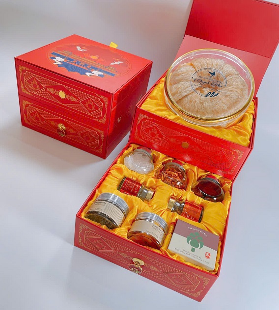 10 món quà Xuân trong hộp quà đều là những thượng phẩm, đặt hàng, chất lượng thượng hạng của những thương hiệu uy tín như: Yến Sào Nha Trang Quỳnh Như, Hoàng Nguyên Garden, Langfarm…Sản phẩm xuất VAT theo đúng quy định, chiết khấu cho doanh nghiệp và Qúy khách mua làm quà biếu tặng.