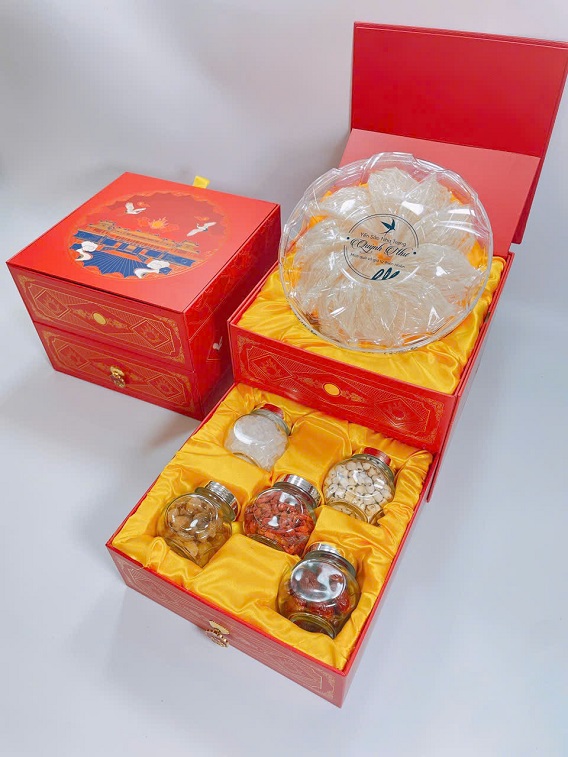 Hộp Quà 2 Tầng – 100g Yến Sào Tinh Chế Sợi Dài Và Các Loại Hạt là hộp quà Tết tổ yến độc đáo được thiết kế riêng cho dịp Xuân Bính Ngọc năm 2026.
